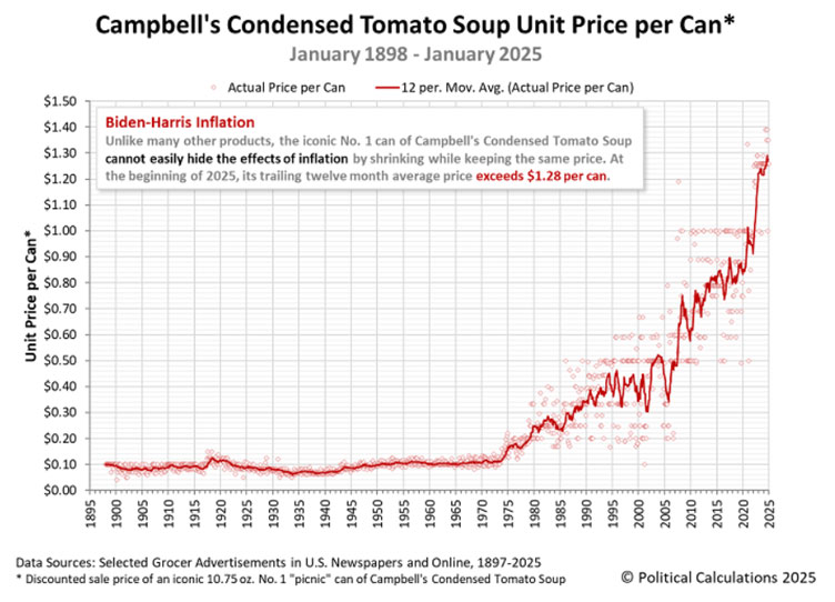 That is, soup cans resist the usual trick of shrinkflation. The creeping reduction of product size rather than price increases.