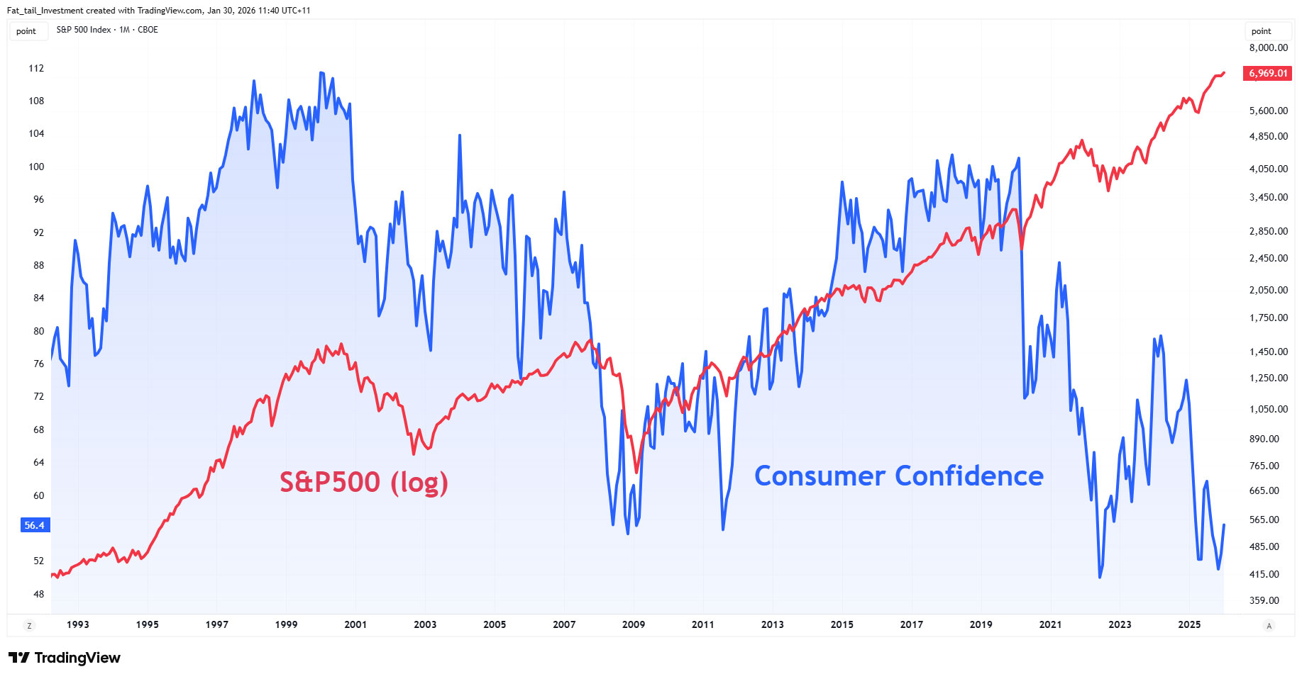 Little surprise, then, that the gap between consumer sentiment and stocks is at a 40-year extreme.