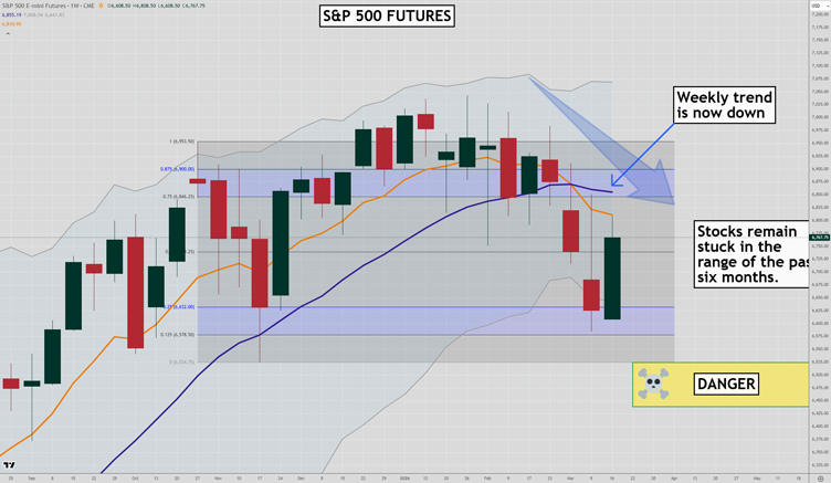 If selling returns around the 6,800-6,900 level, and the low of the past six months at 6,525 can’t hold, I think we will see a rapid decline in the S&P 500 as stop losses are hit.