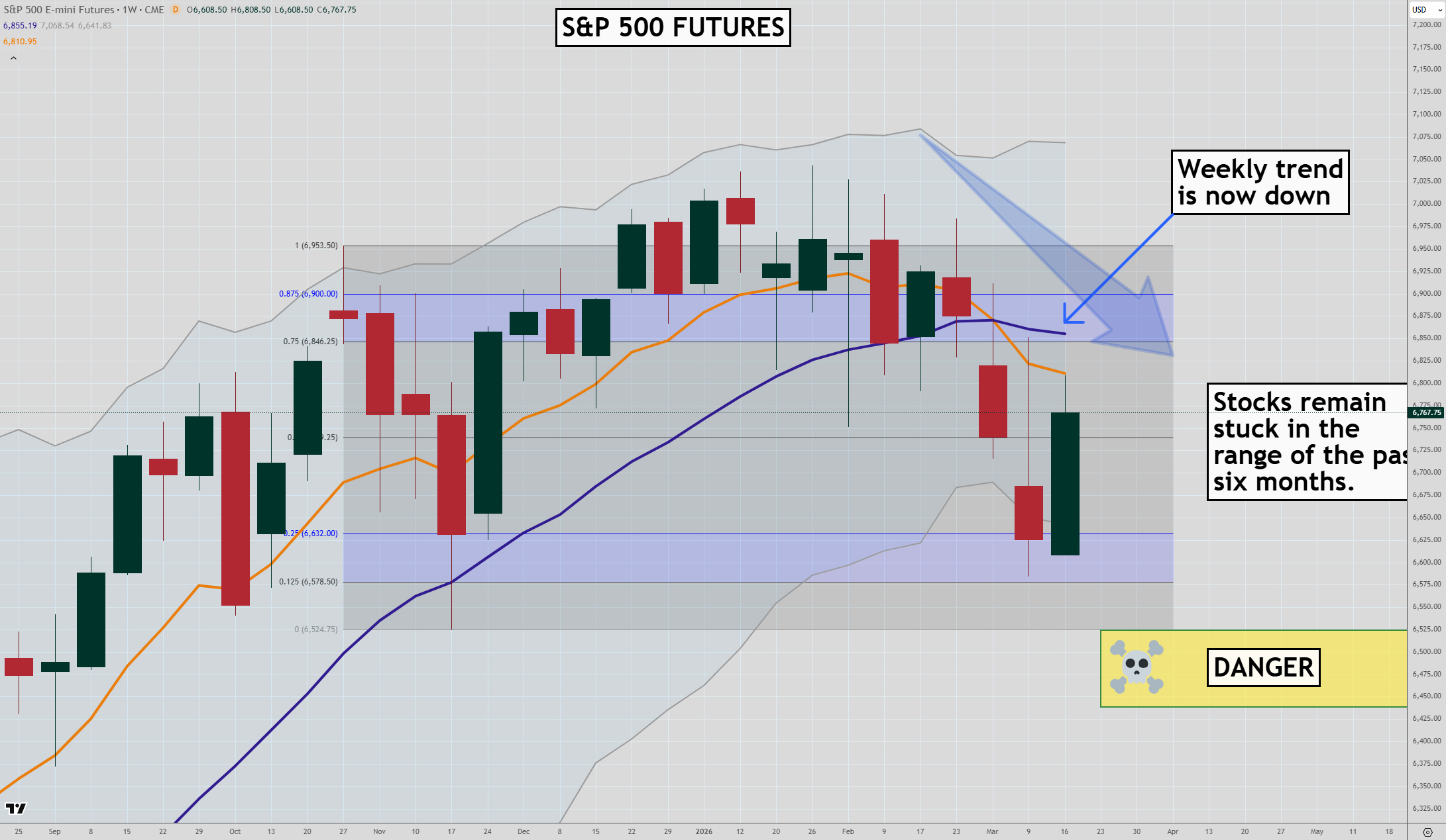 If selling returns around the 6,800-6,900 level, and the low of the past six months at 6,525 can’t hold, I think we will see a rapid decline in the S&P 500 as stop losses are hit.