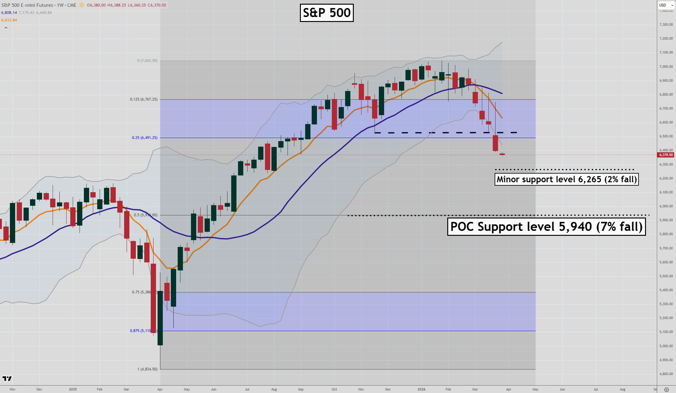 Minor support, based on the range the S&P 500 has been stuck in over the past six months, is just 2% below current levels at 6,265.
