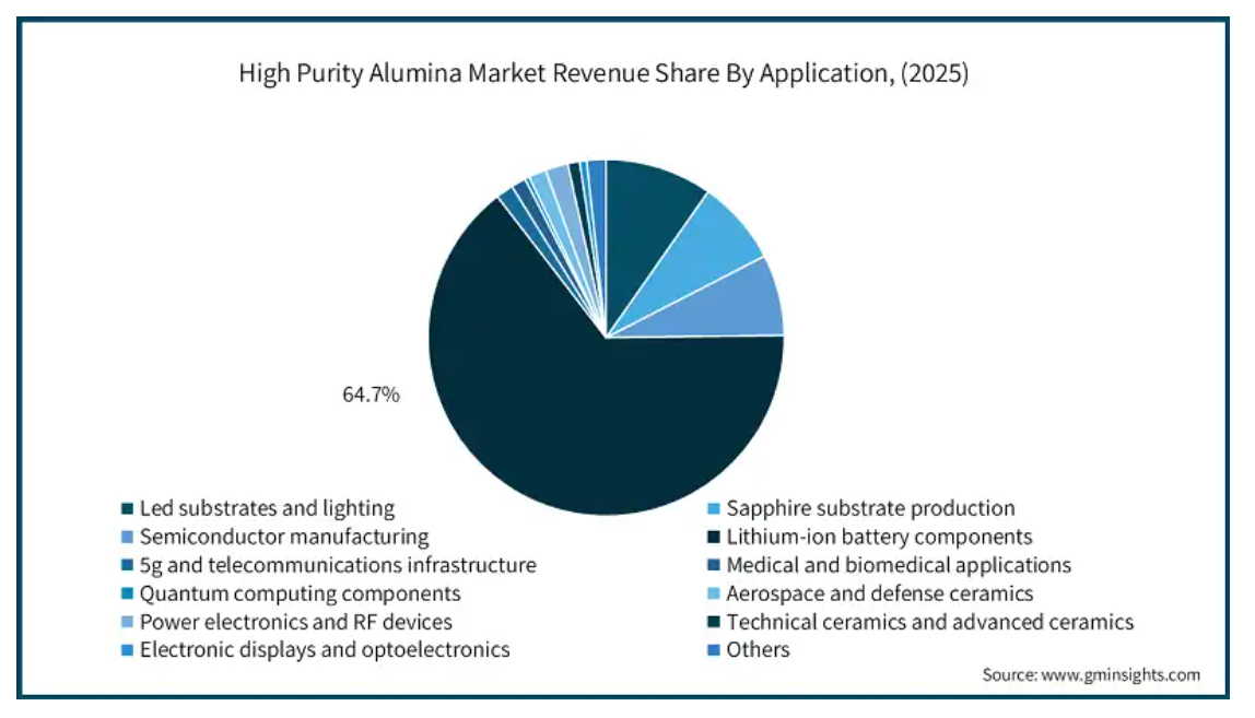 Yet, the largest driver of demand for high-purity alumina is the LED sector. And accounts for around 64% of the overall demand.