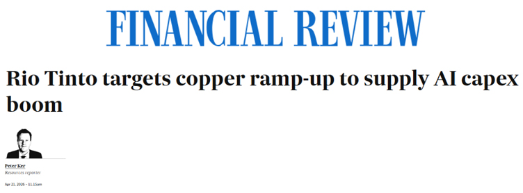 Rio Tinto itself said last week that it is positioning in copper because the US is in the middle of “a major AI capex boom”: