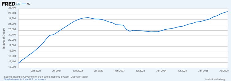M2 is a measure of the money supply. It includes cash, checking deposits (M1), plus savings deposits, small time deposits, and retail money market mutual fund shares.