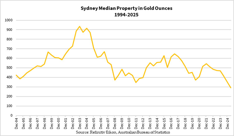 You hear so often how property prices have soared. But not in gold terms! They’re actually the most affordable they’ve ever been in the last three decades if you held your wealth in the shiny metal.