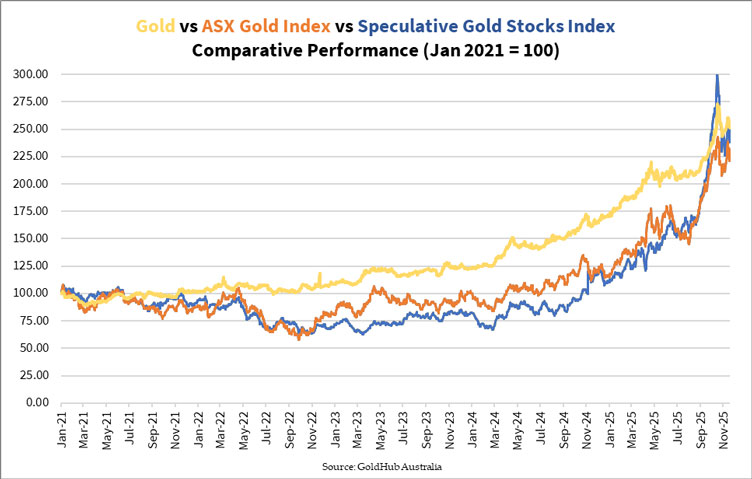 You can see it from the performance of gold vs the established gold producers (orange line) and the speculative explorers and developers (blue line):