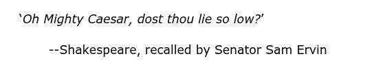 Many scapegoats were proposed to explain the Watergate break-in. Many were the ‘conspiracy theories’ floated up like mists from the Potomac. Fidel Castro was behind it (several of the burglars were Cuban), said some. No, it was a CIA plot to ruin Nixon, said another. Nixon himself seemed to favor this explanation; he nearly fired Bill Colby…who later became a source for one of our newsletters.