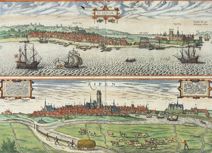 King Erik of Pomerania saw the opportunity. He fortified the strait, built a customs house at Helsingør (top right of image below), and taxed every vessel under threat of cannon fire.