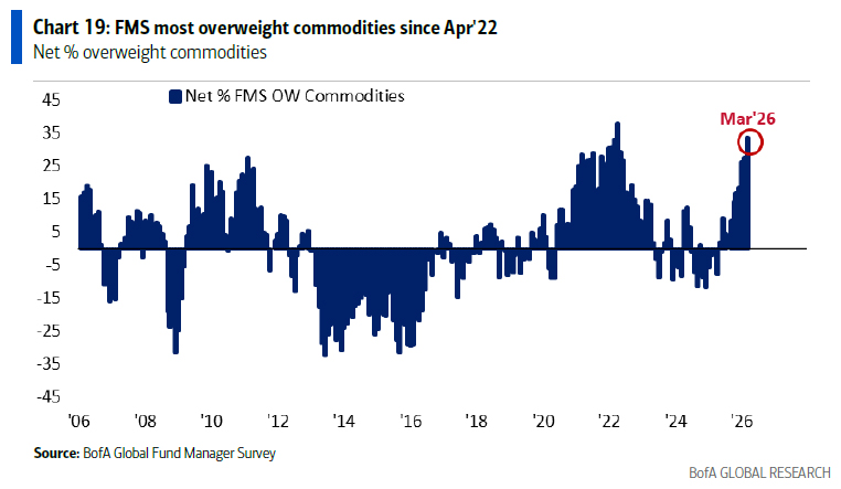 The money managers are nearly at their highest level of commodity exposure in two decades.