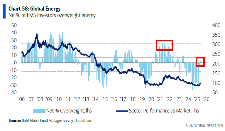 Below you can see that fund managers are effectively neutral in terms of their exposure to energy: