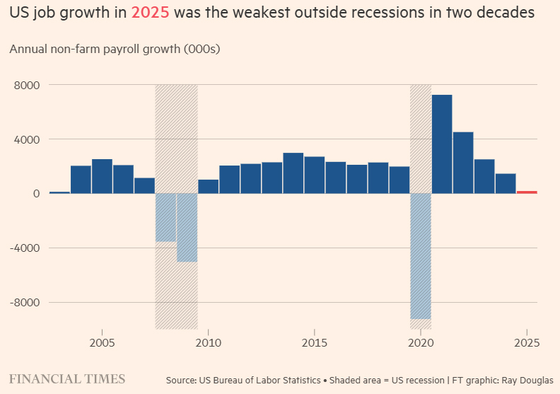 The latest US Bureau of Labor Statistics revisions show that 2025 job creation was revised down by roughly 403,000.