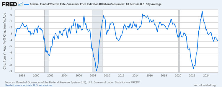 Instead, it pushed them down…and left them below zero — after inflation — for much of the next 13 years, 2008–2021.